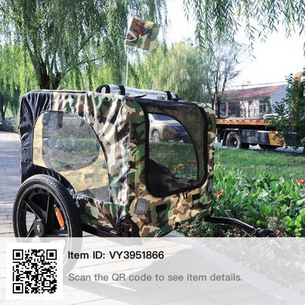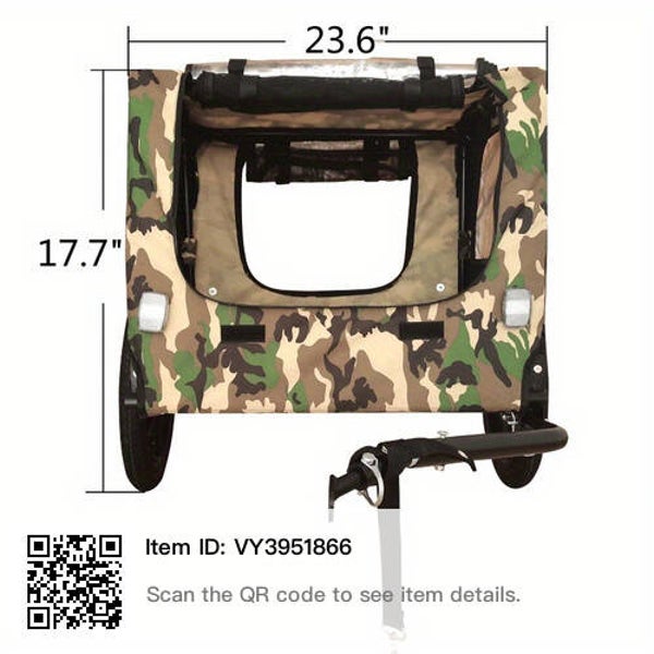 Blend adventure and practicality with this rugged Camouflage Pet Bicycle Trailer, built for outdoor-loving pets and their active owners. Featuring a bold camo print and all-terrain-ready design, this trailer ensures your furry companion rides in comfort and style, wherever your path leads.
