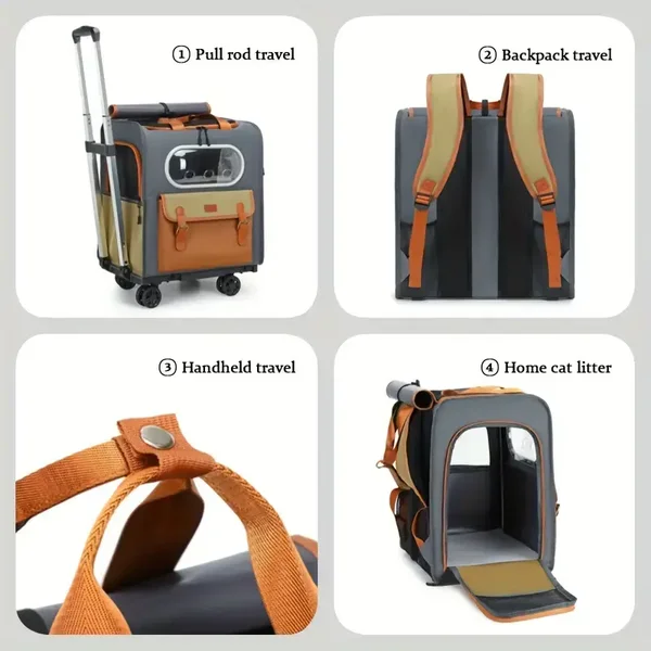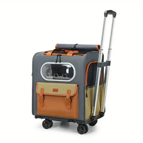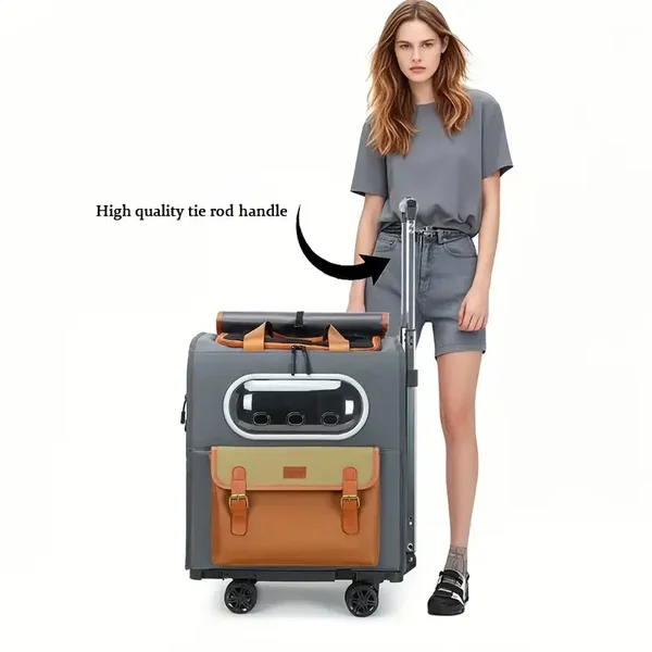 Travel with your furry friends in comfort and style with this spacious multi-pet travel trolley. Designed for convenience and safety, it features a roomy interior that can comfortably accommodate multiple pets, while the soft sleep area ensures they can rest during your journey. The trolley comes with a ventilated window for airflow, a secure zipper door for easy access, and smooth 360° rotating wheels for effortless mobility. Perfect for trips, vet visits, or daily strolls, this trolley makes traveling with pets hassle-free and enjoyable.