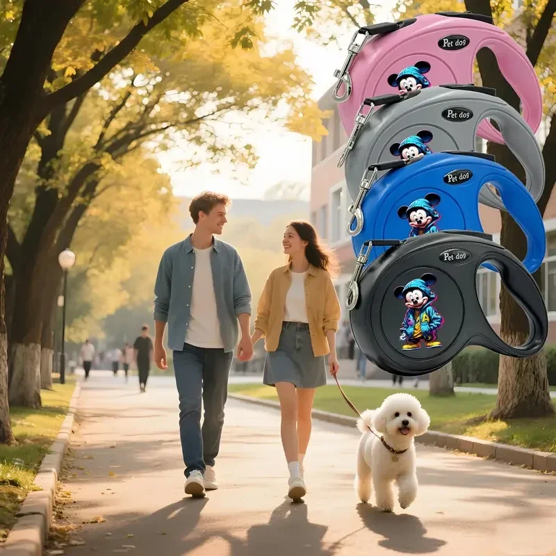 Multi colors retractable leash with lock. Mickey mouse designs